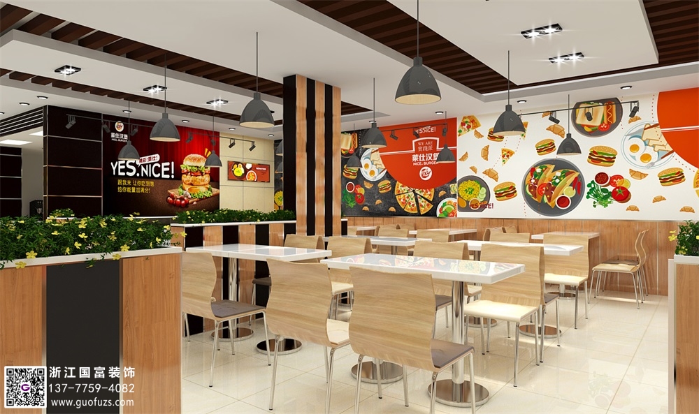 杭州漢堡炸雞餐廳裝修設(shè)計案例效果圖