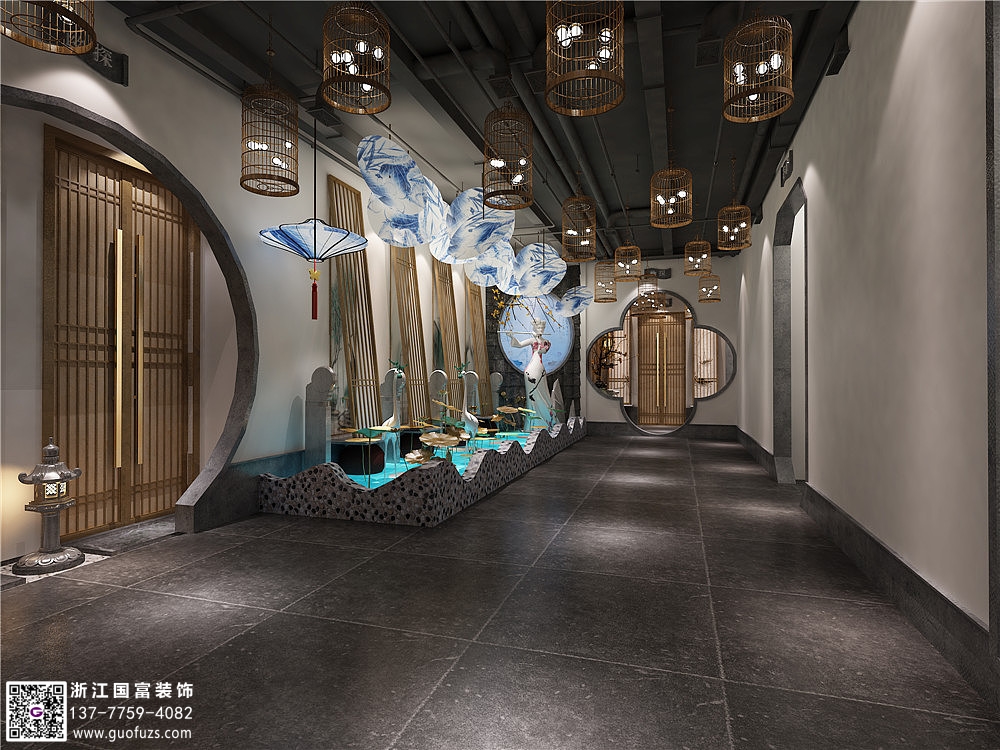 江南風(fēng)情主題餐廳裝修設(shè)計案例效果圖