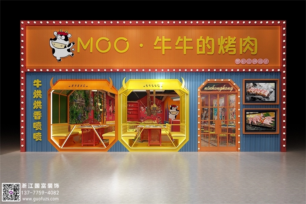 牛牛烤肉店裝修設(shè)計(jì)案例效果圖