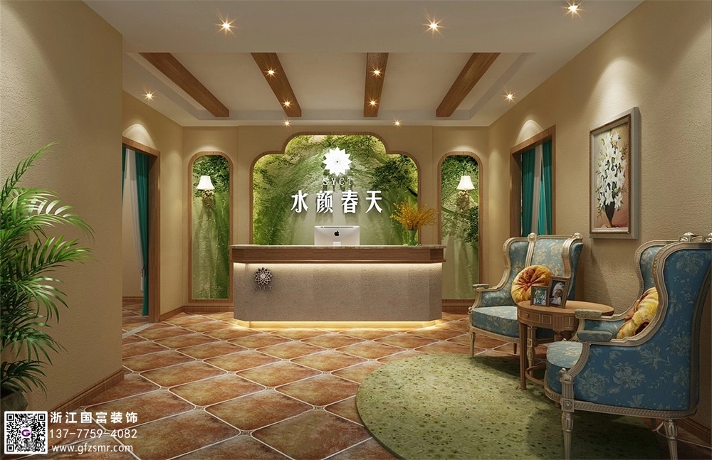 自然田園風(fēng)格美容院裝修設(shè)計案例效果圖